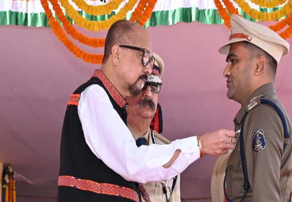 राजधानी में आयोजित गणतंत्र दिवस के मुख्य समारोह में राज्यपाल श्री रमेन डेका ने पुलिस अधिकारियों एवं कर्मचारियों का पद अलंकरण से सम्मानित किया। उन्होंने 15 पुलिस अधिकारी एवं कर्मचारियों को पुलिस वीरता पदक 2024 से अलंकृत किया।