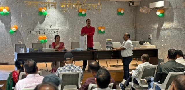मुंगेली 27 जनवरी 2025// राज्य निर्वाचन आयोग के निर्देशानुसार तथा कलेक्टर एवं जिला निर्वाचन अधिकारी श्री राहुल देव के मार्गदर्शन में जिला कलेक्टोरेट स्थित जनदर्शन कक्ष में नगरीय निकाय आम निर्वाचन हेतु ईवीएम एवं वीवीपेट मशीनों के कमिशनिंग कार्य के लिए प्रशिक्षण का आयोजन किया गया। प्रशिक्षण के दौरान कमिशनिंग के संबंध में विस्तारपूर्वक जानकारी दी गई। उप जिला निर्वाचन अधिकारी श्रीमती मेनका प्रधान ने कहा कि नगरीय निकाय निर्वाचन में मशीनों का कमिशनिंग कार्य सबसे महत्वपूर्ण है। उन्होंने बताया कि मशीन में अभ्यर्थियों का मतपत्र लगाते समय सावधानी बरतना जरूरी है। इसमें किसी भी प्रकार की त्रुटि नहीं होनी चाहिए। उन्होंने बताया कि नगर पालिका मुंगेली एवं लोरमी, नगर पंचायत पथरिया, सरगांव, बरेला और जरहागांव में अध्यक्ष और पार्षद पद के लिए 11 फरवरी को मतदान होगा।