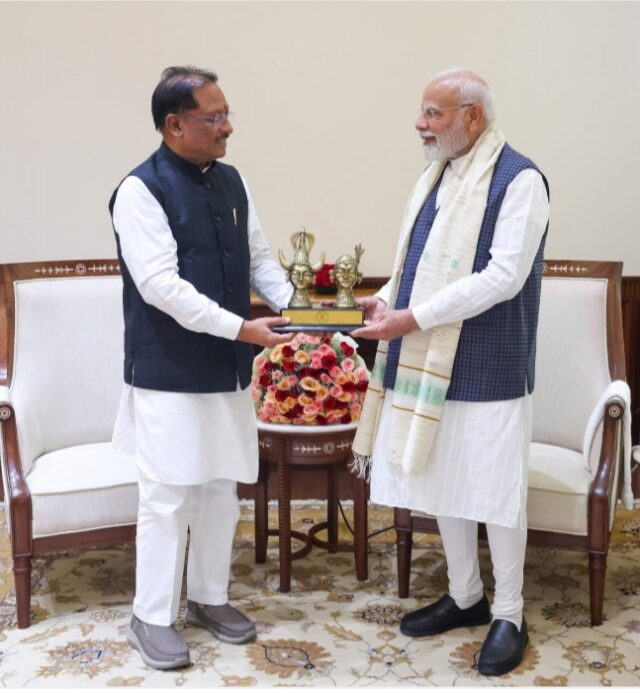 मुख्यमंत्री श्री विष्णुदेव साय ने आज संसद भवन में प्रधानमंत्री श्री नरेन्द्र मोदी से सौजन्य भेंट की। इस अवसर पर मुख्यमंत्री श्री साय ने प्रधानमंत्री श्री नरेंद्र मोदी को 1 नवंबर 2025 को रायपुर में आयोजित अमृत रजत महोत्सव में मुख्य अतिथि के रूप में शामिल होने हेतु आमंत्रित किया। साथ ही मुख्यमंत्री ने प्रधानमंत्री को राज्य सरकार की भावी योजनाओं, विकास की प्राथमिकताओं और जनकल्याण से जुड़े प्रमुख विषयों की जानकारी भी दी।