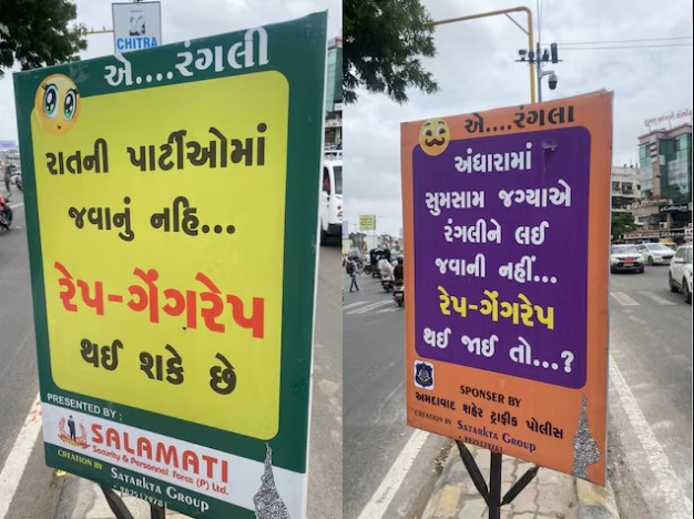 गुजरात के अहमदाबाद में महिलाओं को सुरक्षा से जुड़ी सलाह देने के नाम पर लगाए गए पोस्टरों पर जबरदस्त विवाद खड़ा कर हो गया है. इन पोस्टरों में लिखा था, ‘लेट-नाइट पार्टी में जाना रेप या गैंगरेप को न्योता दे सकता है.’ इस तरह की भाषा को लेकर पुलिस और सामाजिक संगठनों की तीखी आलोचना हो रही है. हालांकि, मामला सामने आने के बाद पुलिस ने तुंरत इन पोस्टरों को हटवा दिया है. साथ ही पुलिस ने स्वीकार किया है कि पोस्टर में इस्तेमाल भाषा को स्वीकार नहीं किया जा सकता है.