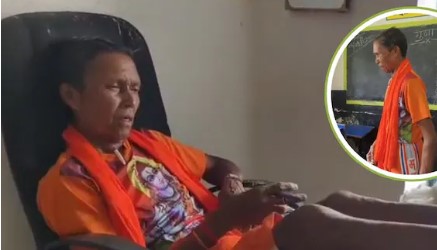 वीडियो के अनुसार, शिक्षक बोल बम लिखे भगवा रंग का चड्डा व टी-शर्ट पहनकर स्कूल पहुंच गया था. उसने कुर्सी पर बैठकर टेबल पर पड़े किताबों पर पैर रखे हुए था. जब उससे पूछा गया तो उसने कहा कि डॉक्टर ने हर दिन 250 ग्राम शराब पीने कहा है.