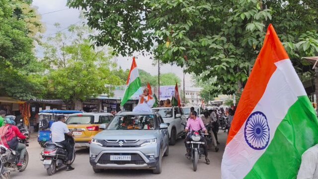 मुंगेली, 11 अगस्त 2025// शासन के निर्देशानुसार एवं कलेक्टर कुन्दन कुमार के मार्गदर्शन में आमजनों में देशभक्ति की भावना विकसित करने और राष्ट्रीय ध्वज के प्रति सम्मान बढ़ाने के उद्देश्य से 15 अगस्त तक जिले में ‘‘हर घर तिरंगा’’ कार्यक्रम का आयोजन किया जा रहा है। इस कार्यक्रम के तहत आमजनों को 15 अगस्त के दिन अपने घर पर राष्ट्रीय ध्वज फहराने के लिए प्रेरित किया जा रहा है। इसी तारतम्य में उप मुख्यमंत्री श्री अरूण साव के नेतृत्व में लोरमी से ग्राम बटहा तक तिरंगा यात्रा का आयोजन किया गया। तिरंगा यात्रा में जनपद पंचायत लोरमी की अध्यक्ष श्रीमती वर्षा विक्रम सिंह सहित अन्य जनप्रतिनिधि और बड़ी संख्या में आमजन शामिल हुए। हाथों में लहराते तिरंगे और देशभक्ति के नारों से वातावरण देशप्रेम की भावना से सराबोर हो गया।