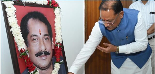 मुख्यमंत्री श्री विष्णुदेव साय ने आज राजधानी रायपुर स्थित मुख्यमंत्री निवास कार्यालय में पूर्व केंद्रीय राज्यमंत्री स्वर्गीय श्री दिलीप सिंह जूदेव की पुण्यतिथि पर उनके छायाचित्र पर पुष्पांजलि अर्पित कर श्रद्धांजलि दी। इस अवसर पर वित्त मंत्री श्री ओ.पी. चौधरी उपस्थित थे।