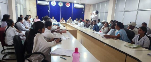 बैठक में सी.एम.एच.ओ. द्वारा चिकित्सालयों में आधार आधारित उपस्थिति, नेक्स्ट जेन मॉड्यूल, टीबी और कुष्ठ उन्मूलन, सिकल सेल एनीमिया जाँच, आयुष्मान भारत, आभा आईडी, मानसिक स्वास्थ्य एवं अन्य राष्ट्रीय कार्यक्रमों की उपलब्धि शत-प्रतिशत सुनिश्चित करने के निर्देश दिए गए। उन्होंने कहा कि अभियान का उद्देश्य केवल स्वास्थ्य सेवाएँ देना नहीं, बल्कि परिवारों के सर्वांगीण विकास और सामाजिक सशक्तिकरण की दिशा में ठोस कदम उठाना है। बैठक में डीपीएम श्री गिरीश कुर्रे, सिविल सर्जन सह मुख्य अस्पताल अधीक्षक डॉ. एम के रॉय, बीएमओ, अस्पताल प्रबंधक, नोडल अधिकारी एवं पर्यवेक्षक सहित स्वास्थ्य विभाग के वरिष्ठ अधिकारी उपस्थित रहे।