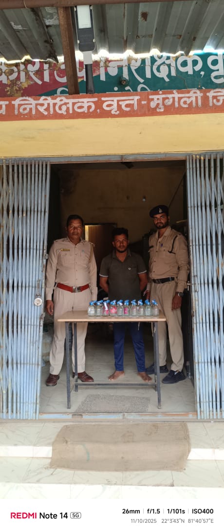 मुंगेली, 13 अक्टूबर 2025// जिले में शराब के अवैध बिक्री रोकने कलेक्टर श्री कुन्दन कुमार के निर्देशानुसार सख्त कार्यवाही की जा रही है। जिला आबकारी अधिकारी श्री रविशंकर साय ने बताया कि मुखबीर से प्राप्त सूचना के आधार पर मुंगेली विकासखण्ड के ग्राम हरिहरपुर के राजेश्वर मंगेश्कर के घर में तलाशी लेने पर उसके मकान से 50 पाव देशी मदिरा प्लेन कुल मात्रा 09 बल्क लीटर बरामद किया गया, जो छत्तीसगढ़ आबकारी अधिनियम की धारा 34(1)क, 34 (2),59 क के तहत अजमानतीय अपराध है। उन्होंने बताया कि आरोपी के विरुद्ध प्रकरण कायम कर उसे मौके पर गिरफ्तार किया गया और न्यायालय के समक्ष पेश कर न्यायिक रिमांड पर जेल दाखिल किया गया। उक्त कार्यवाही में आबकारी वृत्त मुंगेली प्रभारी श्री जयसिंह मरकाम, आबकारी आरक्षक जयेंद्र नंदागौरी शामिल रहे।