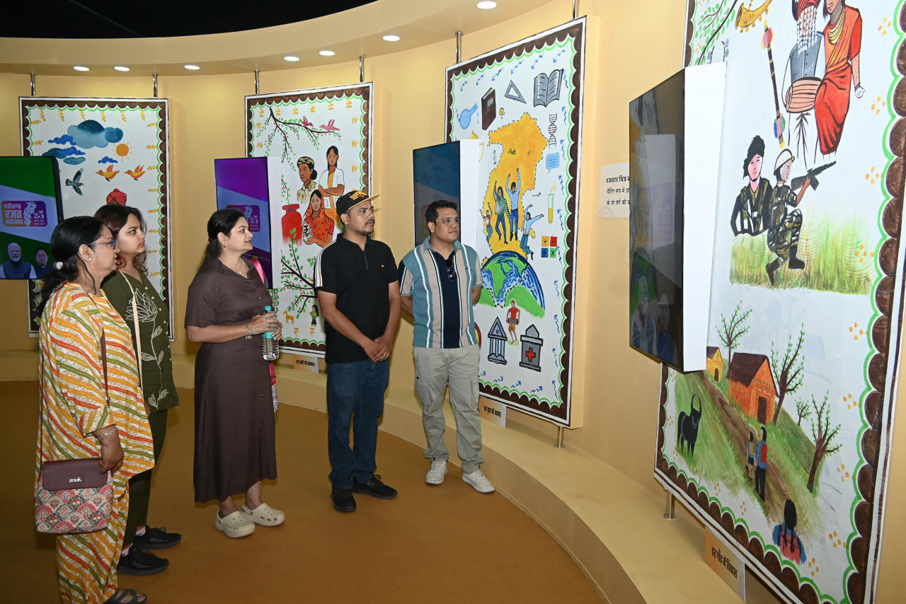 प्रदर्शनी में भुइंया अभिलेख, एमएसएमई इकाइयों की स्थापना, पारदर्शिता आधारित शासन व्यवस्था, हर दिशा में विकास, हर परिवार को घर, हर गांव का विकास, हर युवा को अवसर, हर जीवन को सुरक्षा, हर नारी का सम्मान तथा हर घर में समृद्धि जैसी योजनाओं को विशेष रूप से प्रदर्शित किया गया है। प्रधानमंत्री श्री मोदी के मार्गदर्शन में राज्य के विकास और प्रगति के दशक की झलक भी इस प्रदर्शनी में देखने को मिलती है।