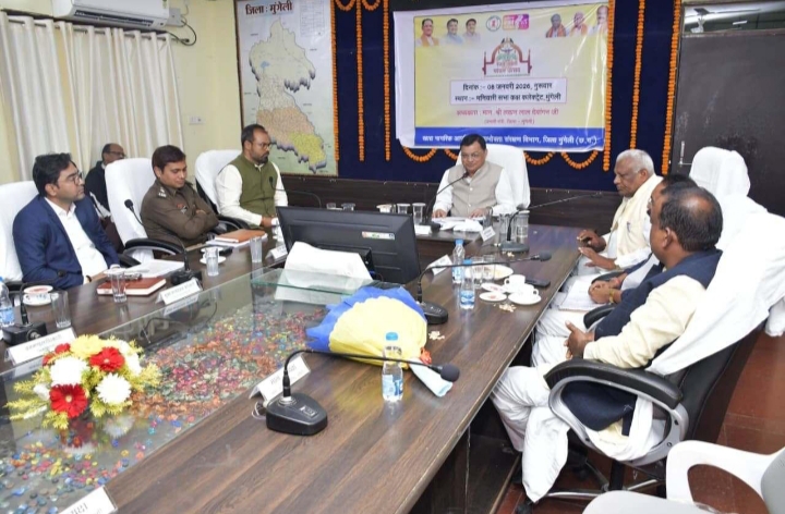 मुंगेली, 08 जनवरी 2026// राज्य के वाणिज्य एवं उद्योग, श्रम मंत्री तथा जिले के प्रभारी मंत्री श्री लखन लाल देवांगन ने जिला कलेक्टोरेट स्थित मनियारी सभाकक्ष में विभिन्न विभागों की समीक्षा बैठक लेकर शासन की योजनाओं की प्रगति, जनसेवाओं की गुणवत्ता एवं मैदानी क्रियान्वयन की स्थिति की गहन समीक्षा की। उन्होंने अधिकारियों को निर्देशित किया कि आमजन से जुड़े प्रकरणों का त्वरित, पारदर्शी और समय-सीमा में निराकरण सुनिश्चित किया जाए, जिससे जनता में शासन-प्रशासन की सकारात्मक छवि बने। उन्होंने कहा कि शासन की योजनाओं का आमजनों को त्वरित एवं समयबद्ध लाभ पहुंचाने की बात कही। बैठक में मुंगेली विधायक श्री पुन्नूलाल मोहले, जिला पंचायत अध्यक्ष श्रीकांत पाण्डेय, जिलाध्यक्ष श्री दीनानाथ केशरवानी, कलेक्टर श्री कुन्दन कुमार, पुलिस अधीक्षक श्री भोजराम पटेल, वन मंडलाधिकारी श्री अभिनव कुमार, जिला पंचायत सीईओ श्री प्रभाकर पाण्डेय, एडीएम श्रीमती निष्ठा पाण्डेय तिवारी, अपर कलेक्टर श्री जी.एल.यादव सहित तीनों अनुविभागों के एसडीएम और सभी विभागों के अधिकारी मौजूद रहे।