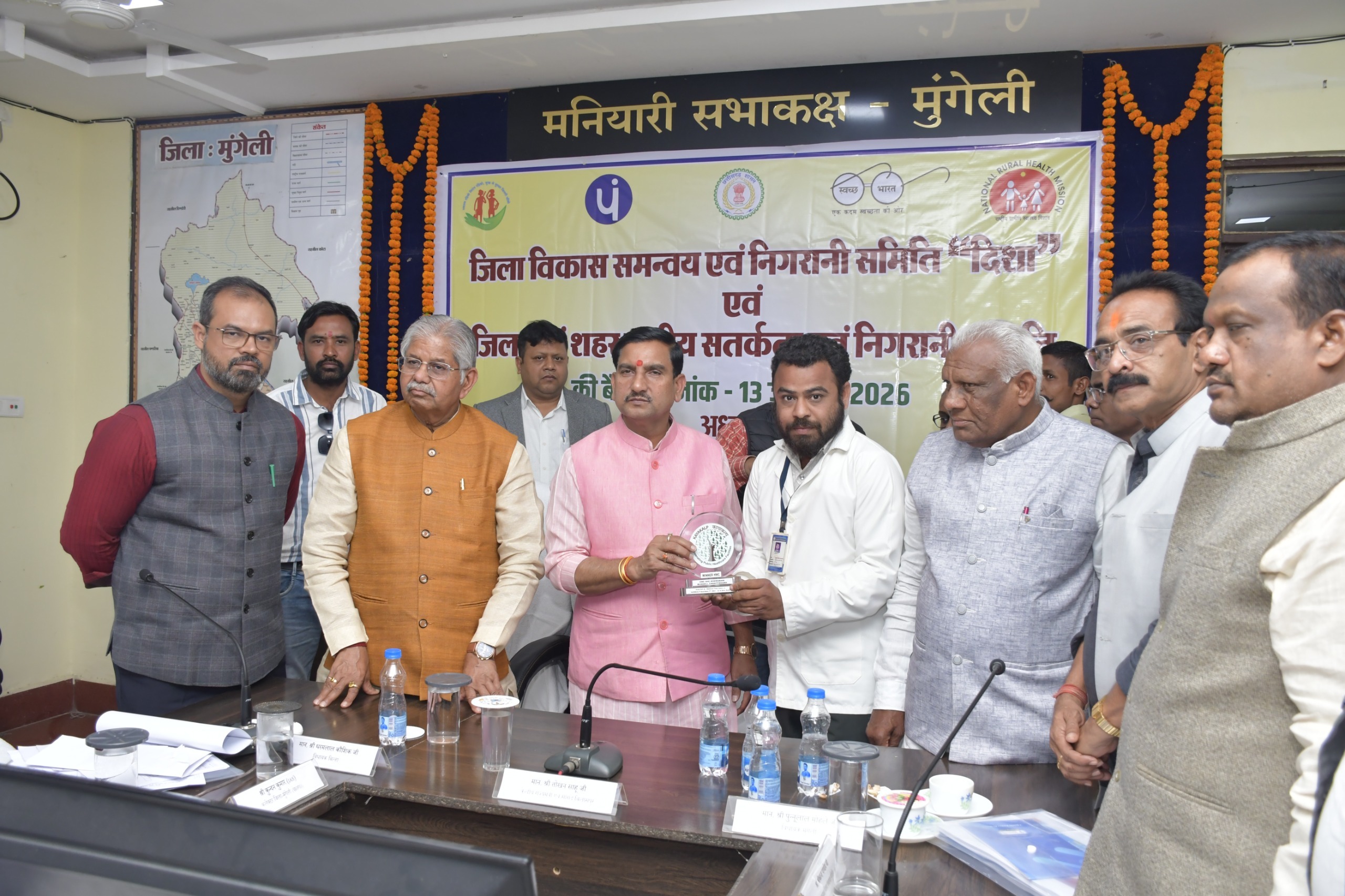 मुंगेली, 13 जनवरी 2026// बिलासपुर लोकसभा सांसद एवं केंद्रीय राज्य मंत्री आवास एवं शहरी विकास मंत्रालय श्री तोखन साहू की अध्यक्षता में आज जिला कलेक्टोरेट स्थित मनियारी सभाकक्ष में जिला विकास समन्वय एवं निगरानी समिति ‘‘दिशा’’ तथा शहर स्तरीय सतर्कता एवं निगरानी समिति की बैठक सम्पन्न हुई। बैठक में केंद्र एवं राज्य शासन की विभिन्न योजनाओं की विभागवार समीक्षा की गई तथा लंबित प्रकरणों पर कड़ी नाराजगी जताते हुए समय-सीमा में कार्य पूर्ण करने के निर्देश दिए गए। केंद्रीय राज्य मंत्री श्री साहू ने कहा कि सभी जिला स्तरीय अधिकारी शासन की योजनाओं और कार्यक्रमों का प्रभावी क्रियान्वयन सुनिश्चित करें। समाज के अंतिम पायदान में खड़े व्यक्ति तक शासन की योजना का लाभ पहुॅचना चाहिए। उन्होंने प्रदेश में जिले के नाम प्रथम पायदान पर लाने के लिए सभी अधिकारियों को टीम भावना एवं समन्वय से कार्य करने के निर्देश दिए। बैठक में मुंगेली विधायक श्री पुन्नूलाल मोहले, बिल्हा विधायक श्री धरमलाल कौशिक, कलेक्टर श्री कुन्दन कुमार, जिला पंचायत सीईओ श्री प्रभाकर पाण्डेय, जिला पंचायत अध्यक्ष श्री श्रीकांत पाण्डेय, जिला अध्यक्ष श्री दीनानाथ केशरवानी सहित अन्य जनप्रतिनिगण और संबंधित अधिकारी मौजूद रहे।